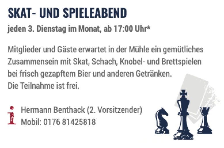 Anmeldungen bei: 1. Vors. Carsten Schmidt, (E-Mail: windmuehle.johanna@t-online.de oder Mobil 0170 34 17 734) vom 01.-23.11.2025.