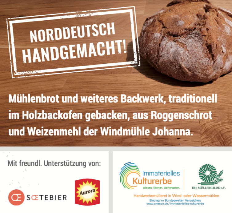 mit Mühlencafé, Backtag, Mühlenladen, Mühlenbesichtigung und Kunsthandwerk & Kulinarischem rund um die Mühle